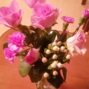 花瓶の花の連投になります•*¨*•.¸¸☆*・゚ 白い菊の花の隣りは、 ピンクのカーネーション 🌸 🎼.•*¨*どれも みんな 綺麗だね ~ 🎶