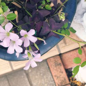 ムラサキカタバミ 花言葉は、「喜び」。 カタバミは夜に葉をたたむ特徴がありこの状態が、片方の葉が食べられたように見えることから、片喰(カタバミ)と呼ばれるようになったと言われています。 ちなみに属名の Oxalis はギリシャ語の「oxys(酸っぱい)」に由来します。カタバミにはシュウ酸が含まれていて、かじると「酸っぱい」とのこと。またムラサキカタバミの葉にはビタミンCが含まれていて、食べることもできるそうです。
