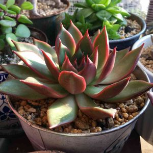 ルブラ🍀 今年の夏に初めて多肉福袋を買ったときに入ってたこ😊✨ 自分ではなかなか選ばないタイプのこだったけど、徐々に色も変化してきて渋めの赤い縁取りがキレイで今ではお気に入り😁🎶 今日も1日お疲れ様でした(*´艸`*)💓