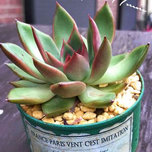 エケベリア・ルブラ 買ったときの小さいポットのままにしていたら、さすがにぎちぎちになって気の毒になったのでちょっとおしゃれっぽい鉢に植え替え(鉢緩め)してみた~緑のカーテンの中に置いてたら少し日照不足みたい。。。ちょっとずつ明るいところに移動させるようにしなくては。。。名前の通りに紅葉してくれると嬉しいな♪
