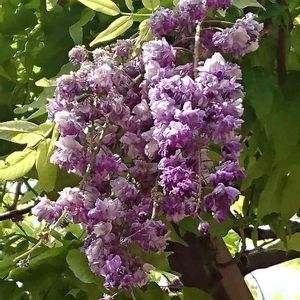 我が家の花畑で、黒龍八重藤が咲いてきました💜 10年前に,栃木足利フラワーパークの苗を植えて育て たくさんの花を咲かせる大きな木になってきました‼️