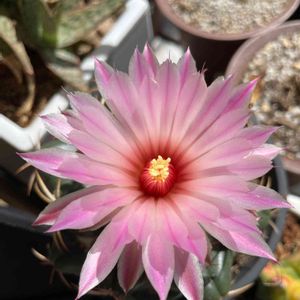 尾形丸 ホームセンターで見つけて 即刻 お持ち帰り😊 紫の入った肌とトゲトゲが魅力的 すぐに植え替えました ほとんど根はありませんでした 枯れないように冬までに発根してほしいですね Gymnocalycium pflanzii v. albipulpa ボリビア🇧🇴南部 タリハ原産 原産地は標高1800mの高地で 夏は東京の3月や4月くらいの降水で 冬はほとんど雨が降りません 夏の最低気温は15度最高気温は27度 冬は最低気温は5度を下回りますが最高気温は20度をこえます 冬は温室があると丁度よさそう 春は毎日水やりしてもいいねかもしれませんね