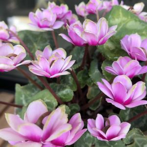 お気に入りのお花屋さんで初めてみたシクラメンをゲットしました✌️ 縁が緑の「グリーンティアラ」 このシクラメンはお花を真ん中に集めるのではなく、自由にあちこちに広がるタイプのシクラメンですです🥰