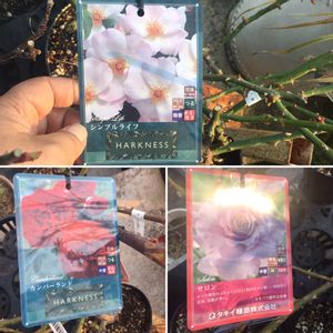 またもや近所の園芸店に立ち寄ってしまい、軽く2時間ほど過ごしてしまいました。 バラの大苗が沢山入荷されていて1280円、しかも全部タキイの苗で、目移りしまくり。きっと今シーズンの売れ残り処分なんだろうなー。 とりあえず、札の写真を撮りまくり、今夜は育て方や花の特性を調べてどれを買うか悩む予定です。 って、狭い庭には置く場所がないのにどうしましょ😅