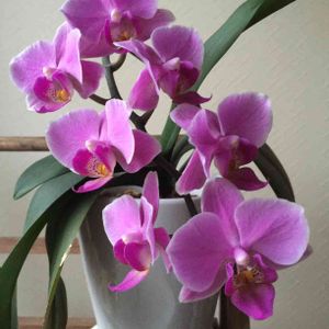 我が家 ピンクは極少です。が、数年前にいただいた小さい胡蝶蘭😊 我が家に有る 唯一の蘭です。 けなげに毎年 咲いてくれます💕