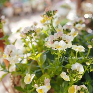 花友さんから頂いた大事な種ちゃんより🌱 香る宿根ネメシア💛 花弁にほんの〜り優しいピンクが乗ってます 晴れた日は眩しいくらいのイエロー✨
