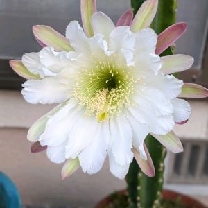 今、柱サボテン🌵が開花しました😻 やっぱりサボテンの花は何でも美しいですね🤩