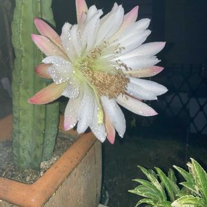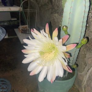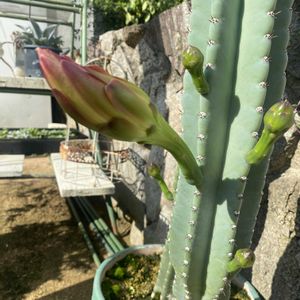 念願だった 柱サボテンに見事な花が咲きました🌵🌼*・ うちの子になったのはカレコレ5年6ヶ月前🗓 根付いてから1・2年は花芽も付かなかったけど... ココ数年は親指くらいの花芽が付き楽しみに毎日眺められるようになったんだけど... いつも膨らむ前に黒くなりいなくなるを繰り返してた💦 今年は最高4つの花芽が出来てて~ 3つは早い時期に黒くなって落ちちゃった꒰ঌ🖤໒꒱ 残り1つも多分時間の問題かな~🤔 そんなある日... ベランダで主人が大きな声で大騒ぎ 見て見て(۶* 'ꆚ')۶" ꁖՇ~✧⃛🌵🌵🌵 花芽が凄い事になってるよ♡ それからがめっちゃ早かった🌵 気付いたのが9月9日 あっという間に見事に咲いた🌵🌼*・ コレは記念にGS投稿しておかなきゃ📷´- サボのお里のGS友に一番に動画送ってお知らせ📱💭💕~咲くまでの5時間楽しかったよ❤ 来年もまた感動をよろしくね🌵🌼*・ ...今日もまだ半開きでサボテンにくっ付いていた🌵🌼*・ 落ちる前に取ってあげる?落ちるのを待つ?今日もまた咲くのかな? 小さな幸せをありがとう♡