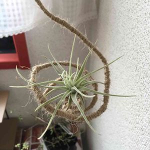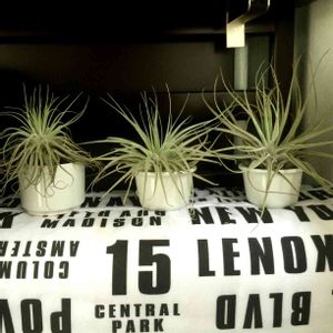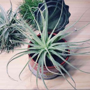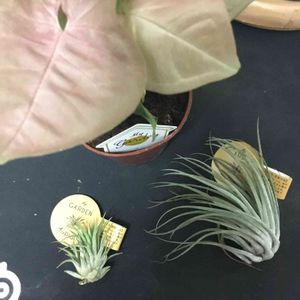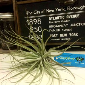 新入りのエアプランツさん♪ 先程、近所のスーパーで夕飯の買い出しとともにお迎えしてきました! なんと、どれでもひとつ200円〜!(゚∀゚) 右上のシルシナータくん。下のウェービィーな子はタグにエアプランツとだけ。 名前がわかる方いらっしゃいますか? 真ん中は、うちに来てもうすぐ一年になるフックシィフックシィ先輩✨ 大きさはほとんど変わっていない気がするけれど、枯れてもいない!現状維持も、立派に生きている証👏凄いぞ‼️