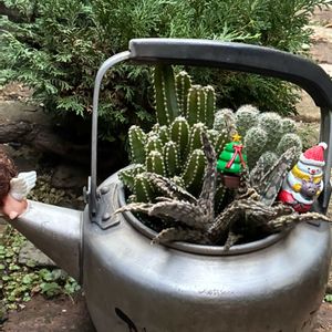 (*´▽`)ノ ハーイ♪♡♡ やかん寄せ植え🌵 🏷️タコの日🐙 🏷️るる かまぼこ板で繋がる輪 ① やかんクリスマス🎄🎅⛄️ ② 短毛丸さん💚 タコ🐙添え ③ リトープスさん 🐙添え ④ お気に入りコーナー ディッキアさん ⑤ ブロンズ姫さん ニョローン🫣💦💦 サビサビ缶にて〜 放置になってます😂💦💦