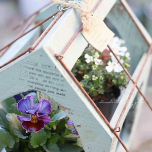 園芸店の店頭で レディをはじめ素敵なパンビオが たくさん並んでいたのですが あれこれと悩み過ぎて手が出なかった 𐤔𐤔 ビオラ沼入りしたきっかけの子 フレアブルーを一つだけお迎えしました(o´艸`) 何年振りかな〜 コロナ前だったかも〜✨ 吊り下げタイプの お家型の雑貨が半額になっていて こちらもお迎え どうやって使おうか これから考えます(*´艸`*)