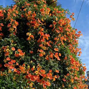 ご近所さん宅のノウゼンカズラ 大きな木に絡み付いて大木に見える!!