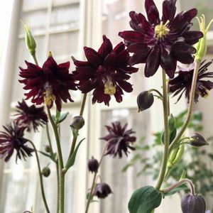 おはようございます🌞 朝の気温はまたヒトケタ。。。 果樹には最高のひんやり空気なんだけどね💦 オダマキ・ブラックバロー🎶 ウィンキーダブルと比べると背が高いのね✨ 下向いてるからお顔が良く見えませんね〜😅