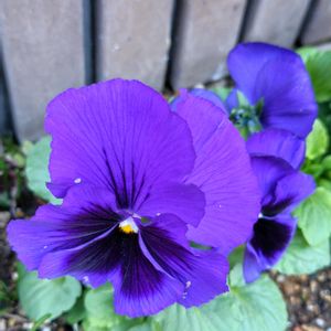 今日のお花 パンジー スミレ科スミレ属 一年草 ヨーロッパ原産 ヨーロッパで自生する野生種から育種された。 かつては大輪のものをパンジー、小輪で株立ちするものをビオラと呼んで区別していたが、今は複雑に交雑された園芸種が登場し、区別できなくなっている。 花期10〜5月 以前は春の花のイメージだが、今は秋から春まで花期が長くなっている。