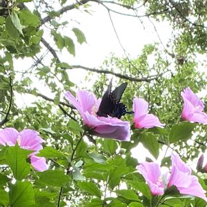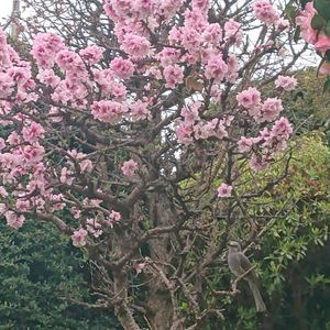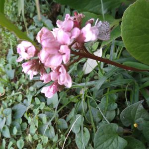 ②枚目 ヒマラヤユキノシタ🌸を撮ろうとしたらヤマトシジミチョウ🦋がやってきて、撮り終わるまでじっとしていました。右↑ 密に夢中だっただけでしょうけれどね(。•̀ᴗ-)✧