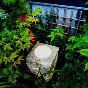 昨日の🤳です。 通り道のお宅の、石造りの庭園常夜灯が、素敵です。上と横の切れ目から、灯りが廻りを照して、足を止めて🤳しました。