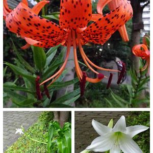 おはようございます😃 オニユリ アフリカハマユウ(インドハマユウ) @みーさんから回答いただきました。 名前を教えてください🙏 下段の 白いお花の名前がわかりません。 今年は花柄が曲がってしまっていますが、通常はまっすぐです。