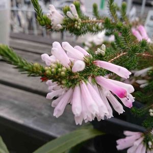 エリカ ホワイトデライトさん💕 お迎えした時は真っ白だったのに、ピンク色に染まってきました。 そして最近葉っぱが紅葉してきました〜😊