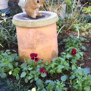 ビオラ ももか の苗🌱が まだ 余っていたので、 赤と 黄色 ( ばらいろ と、ひよこ) を、リスさんの 足元に 植えました〜❗️🌼🌺 明日から 12月、、、ぐっと 寒くなるんだろ〜な💦 リス🐿だと 思ったけど、ウサギ🐇⁇ 分からなくなって来た。。。