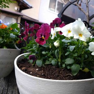 ももか シックな色のビオラさんを寄せ植えに入れました😊