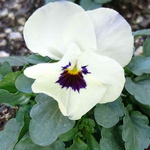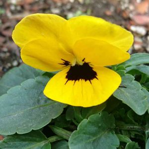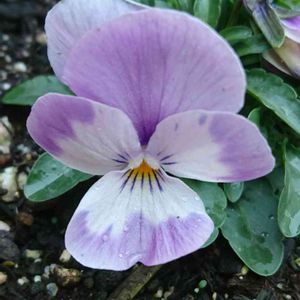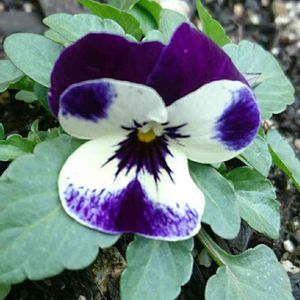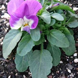 種からビオラ。雨が降らない前に📸。うさぎももかかな? 先週開花しました😊