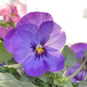 ビオラももか しんしん♡ 今日は朝から風がものすごく強く吹いています🌬️ でもこのしんしんさんは低姿勢でギュッと引き締まった状態で咲いているのでびくともしません💕 丈の長いアネモネさんとかは流されるままに傾いていました😊 明日は風止むといいな🤣