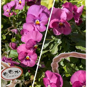 買う お花は、今だに ビオラさんばかり.... 💓💕 クリニック🏥の帰りに ガーデン館が あるので、 ちょうど 寄って 帰る!って 言う、道順😅💦 ももか のシリーズ💖 いっぱい 有るんですねぇ〜❣️^_^ 🩷ももか うさぎ🩷 です‼️ すぐ 植えました〜! このプラ鉢が 植え易くって、気に 入っています。。。