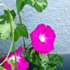 ついについに! 昨日からアサガオが咲いてくれました✨️✨️ めっちゃうれしいです!! 同じ袋からの種で、同じプランターの中なのに色が違うのもまた良いです✨️