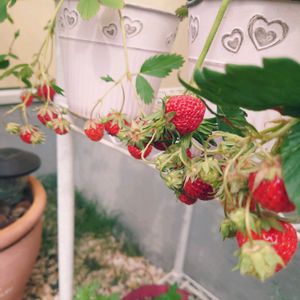 苺は大好きだけどちょっと潔癖な小5の娘の為に…実が土で汚れないように、今年はいくつかプランターに移植してみました🍓 うわ、気付いたらめっちゃなってる! …イチゴは古い株は生育悪くなると聞いてたんですが…この2〜3年目の筈の苗、逆に一番実がなってる気がします(^o^)