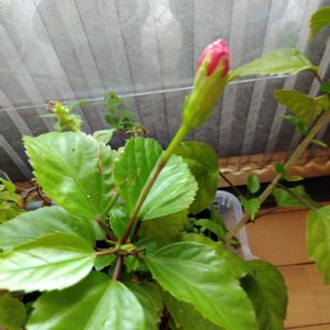 ハイビスカス、11月に入ったので室内に入れました。 二度目の冬越しです。 一年前よりかなり成長しました🌺 大体50センチほどになりました。