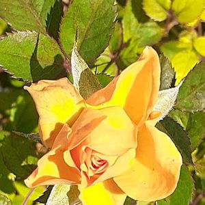黄バラ (ゴールデンセレブレーション) まだ葉っぱも赤いまま 変わった色の花を咲かせています💛🧡 元の黄色いバラに戻るのでしょうか🤔😉 𓂃𓂂𖡼.𖤣𖥧𓈒◌💛🌿܀𖥧𖧧 ˒˒.