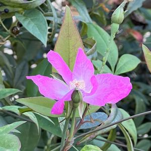 バラ「フォーシーズンズ」 春に新苗でお迎えしました✨ 秋になってやっとお花を見ることができました✨ 昨日の雨に打たれても、美しさを保ったままです😄 可愛いし色も良いし、雨にも強く花持ちも良く、今のところ期待以上です✨️ 病害虫にも強いみたいです😊 あとは暑さにはどうか。強いらしいけど、来年の夏にならないと実証できないので、それは来年の楽しみにします✨️ 香りも良いらしいですが、高いところに咲いているので、撮影するのが精一杯でした。 低いところにある蕾が開花するのを楽しみにしてます😄 ピエールドゥロンサールが大好きで、ピエールに似ているバラを四季咲きで見たいと思っていました😄 夢が叶ったかなぁ✨