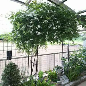 こちらは 一重の白モッコウバラのアーチ (発展途上中💦) 八重に比べると 華やかさには欠けますが 素朴で可愛くて お気に入りです😆