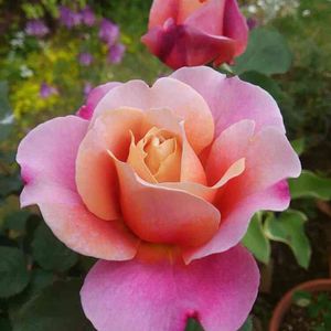 おはようございます😃 ER 中輪のティージングジョージアです🌹 つるバラとして育てるのが良い見たいですが、場所の確保が出来ないので鉢で小さく育ててます この高さでうつ向かれると撮るのが大変(๑>﹏<๑)