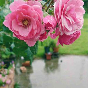 ポンポネッラの2番花も、雨に濡れて綺麗です。 下の方の花壇は一応DIY… アップではお見せ出来ませんが💦 ここのコンクリートエリアは車1台停められるよう、と敷いたのに、晴れてるときはバラの鉢を置いているので、主人に叱られております(;>_<;)