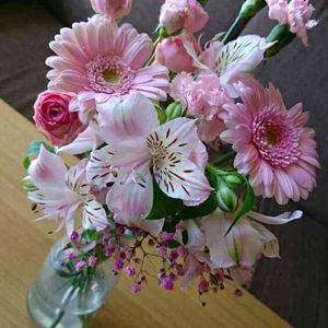 バラ🌹は優しいピンク色🎵 400円アレンジ😄