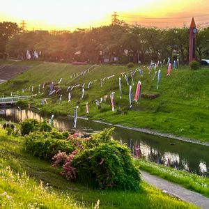 今日は子どもの日でしたね♪ 利根運河に鯉のぼり飾り◌𓈒🎏𓂃 𓈒𓏸◌゜ 夕方のショットになってしまいましたがせっかくなので