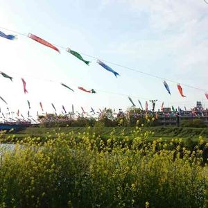 菜の花と鯉のぼりの群れ🎏🎏🎏✨