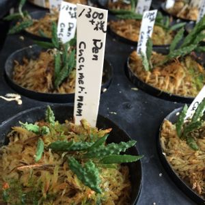 Dendrobium aphyllum 'Peach Cascade' デンドロビウム アフィラム ピーチカスケード 出掛ける前は(今日は株を増やさないぞ)と決意して出たんだけど。朝起きたら3株あった、あら不思議。 春頃、薄ピンクの花が降るように咲く予定。