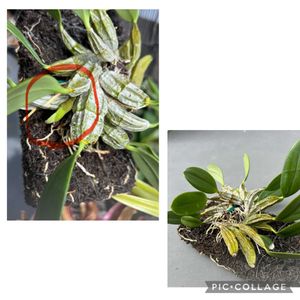 1枚目:カトレア ルッセリアナ 開花まで秒読みかなꉂ🤭 2枚目:デンドロビウム エンジェル ベイビー グリーン“愛” コンパクトサイズ(これ以上背丈を高くしたくない)に仕立てたいので新芽を抜く作業をしました。赤丸の中は新芽、青丸の中は新芽を抜いた後。伸びる成長をストップしたから横に太り出すのかな•́ω•̀)? 3枚目:高温高湿度の夜が危ないらしい⚠️赤丸⭕️パフィオペディルム の腐り。右と左は怪しかったので外しました。右は違ったかも、やっちまった…