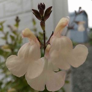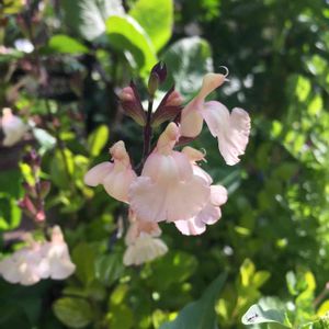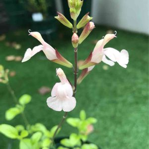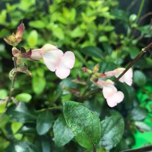 チェリーセージ ムーンライトオーバー🌸 葉っぱはライムグリーン、茎とガクはブラウン、お花はピンクがかったクリーム色のとってもオシャレなチェリーセージさんです😍 ふんわりした雰囲気が素敵でしょ〜 (*˘︶˘*).。.:*♡