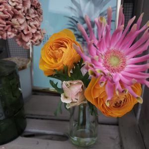 はなどんやさんからお花を購入し、アレンジしてみました 向かって右側は、ラウンドブーケ💐風に…
