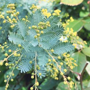 ギンヨウアカシア Acacia baileyana 和名:ギンヨウアカシア 科名:マメ科 属名:アカシア属 ギンヨウアカシア(Acacia baileyana)は、春早くに株を覆うほどの黄色い花を咲かせ、よく目立ちます。名前のとおり葉色が銀灰色で観賞価値が高く、庭園樹として人気があります。幹は太くなっても柔らかく、枝葉が茂りすぎると重みや風を受けて枝が地面に接するほど大きく曲がることもあります。幹を添え木と支柱でしっかり支えておきましょう。大きく育つため、ある程度生育したら樹形維持のための剪定が必要となります。ミモザと混同されやすいのですが、ミモザとして流通しているアカシアは別種のフサアカシア(A. dealbata)のことです。フサアカシアより多少コンパクトな樹形もギンヨウアカシアの魅力です。 園芸分類:庭木・花木 形態:高木 原産地:オーストラリア南東部 草丈/樹高:5~10m 開花期:3月~4月上旬 花色:黄 栽培難易度(1~5) 耐寒性:普通 耐暑性:強い 特性・用途:常緑性 ✧ギンヨウアカシア Acacia baileyana 春に鮮やかな黄色の花が株を覆う。また、美しい銀灰色の葉色は開花期以外でも観賞の対象となる。 ✧プルプレア Acacia baileyana ‘Purpurea’ 新梢と若葉が赤紫になる品種で、葉色だけでも美しい。ギンヨウアカシアより枝の伸びは弱く、花つきもやや少ない。樹形もよりコンパクトになる。 ✧アカシア・スペクタビリス Acacia spectabilis 主にオーストラリアを中心に分布するアカシアの仲間。暖地性の常緑樹で春に黄色の花を密に咲かせる。英語名は、グローリー・ワトル(glory wattle)。 春よ、こい♪ ♡黄色のお花が綺麗で咲くのが見たい~♡