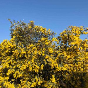 ギンヨウアカシアの蕾🔅🔅🔅🔅🔅 お散歩中のおばあちゃんが、 「真っ黄色で、もう咲いとるねー」と、 声をかけてくれましたが、残念…… 色づき膨らんできましたが、まだまだ。 「きっと、2月の半ばには満開ですよ」と、 お返事しておきました。 🏷金曜日の蕾たち 参加させて頂きます。 日本では、このお花をミモザと呼んでいますが、本当のミモザはオジキソウの仲間のピンクの花で、誤用されています。 この花はアカシアの花で、ギンヨウアカシア、フサアカシアなど、いくつか種類があります。 でも、ミモザの方が通じますよね。。