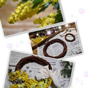 今日のお花💛ギンヨウアカシア💛 2年前のミモザ💛のリースを作っている時の写真です♪ 残りのミモザ💛も挿して飾ろうと思って瓶を用意してたので👀📷️✨ 実は、今日お花屋さんでマルシェが有りミモザ💛のリース作りが有るんですよね🌼🌱 時間が合わないので写真だけ撮って来ようと思ってました♪