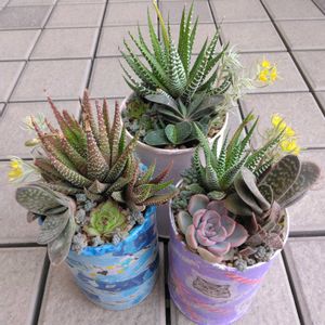 あれ、もう5月も10日過ぎ?! GWのお迎え多肉です。 ダイソーの300円多肉、ベルベットと王冠ラベルのスタージェイとキスミー。 今春は色々頂いたからもう増やさないぞ!!!と思ってたのに😅 ダイソーは別腹だし! ホムセンでセールしてたから……!!! アエオさん達が夏顔になってきました。