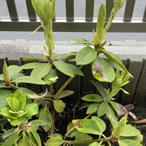 一昨年、 花の咲いているシャクナゲを購入。 殆どのお手入れ無しで 去年は綺麗に咲いてくれたので そのまま育てていました。 沢山の花芽らしきものもついて ずーっと楽しみにしていたのに ところが! 筍の様な物がズンズン伸びて 全てが☘️に👀 うっそ〜👀 なんで〜😂 ショックです。。。😂 調べてみたら 意外とお手入れ 気をつけないといけないらしい。。。 この葉っぱはこのまま伸ばしていいのか 勉強しなくちゃ❣️