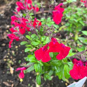 サルビア ミラージュ チェリーレットです。 西日のあたる場所には サルビアと決めて、 我が家の9種類めかな🤔 購入した時は2枚目のような 少しピンクがかっていたのが 次に咲いた時は 真っ赤になってました。 植物あるあるですね🤗