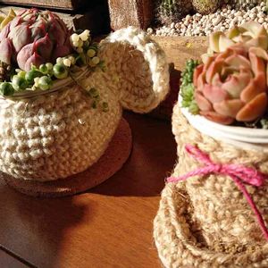 ラスカルさんの麻紐編みに🐀👢❤️ ぐふふふ❤️( ¯ᵕ¯ ) (寄せ植えと投稿は順不同で😃💦宜しくお願いします(*・ω・)*_ _))ペコリン) 🐀ブラッドブリアナ 👢ブラウンローズ