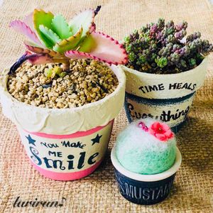 ミニマルシェで買った多肉さんと鉢です♡ サボテンも手作りでカワイイ(✿´꒳`)ノ°+.